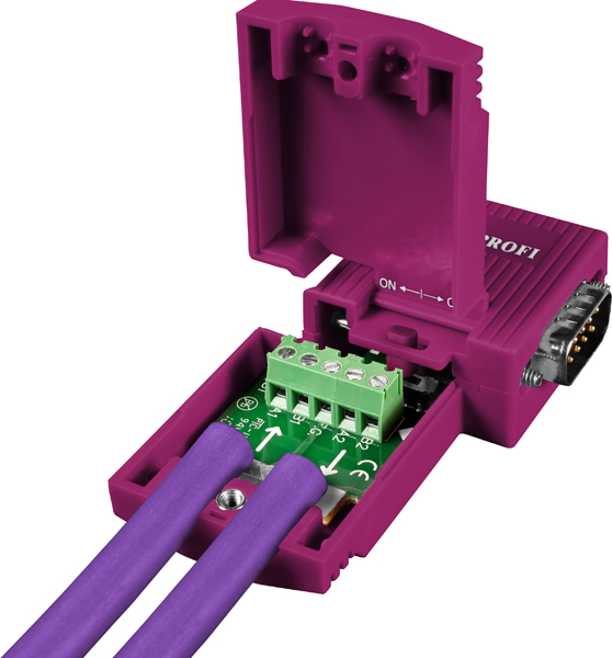 Разъем для подключения устройств PROFIBUS, два входа для кабеля, DB9 "папа"