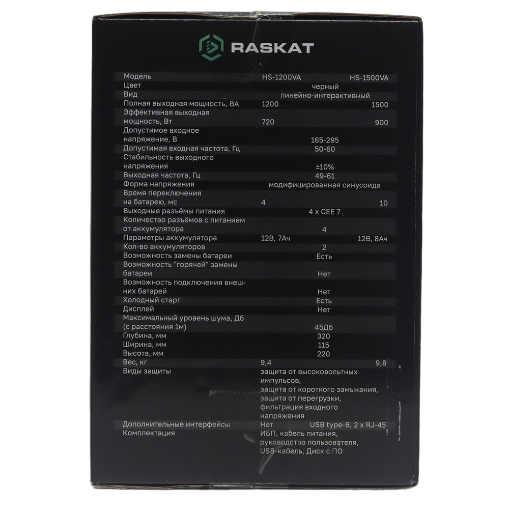 ГК «Навигатор», сетевой и системный интегратор, предлагает купить Источник бесперебойного питания (ИБП) Raskat Bad Pack HS-1200VA 1200VA, 720Вт, 4хCEE 7 bp.