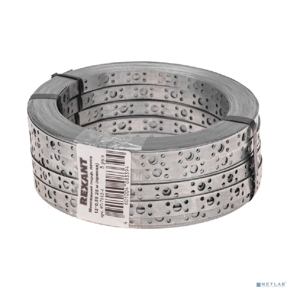 Rexant (07-7112-4) Лента-полоса монтажная оцинкованная, перфорированная прямая 12х0,55 мм (рулон 25м)