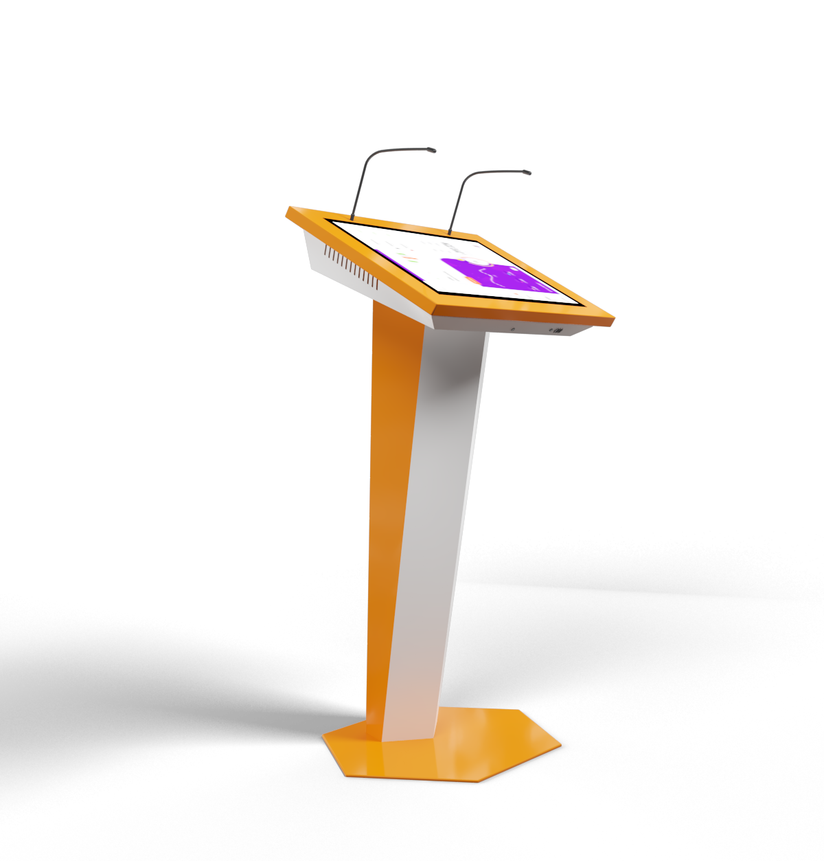 Футуристический, запоминающийся дизайн и высокотехнологичная начинка – вот главные особенности этой интерактивной трибуны. Мы предусмотрели все, что нужно для выступлений – микрофоны, усилитель звука, необходимые разъемы для подключения оборудования, большой сенсорный дисплей, возможность выводить информацию на большой экран.