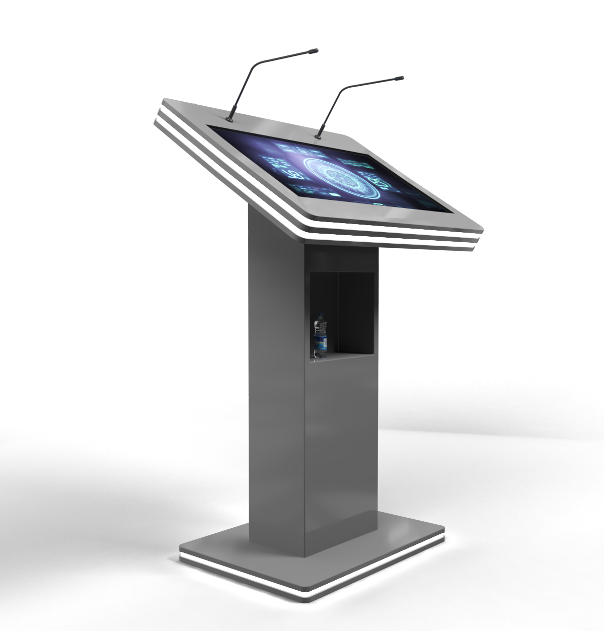 Одна из самых стильных моделей в нашей линейке интерактивных трибун украсит любой фестиваль, конференцию или бизнес-форум. Мы встроили в трибуну большой яркий дисплей с технологией мультитач, микрофоны, разъемы для дополнительной аппаратуры. WHITE STRIPES – отличный помощник для спикеров или лекторов в вузах.