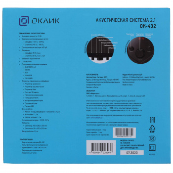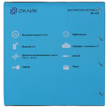ГК «Навигатор», сетевой и системный интегратор, предлагает купить Колонки Оклик OK-432 2.1 черный 25Вт BT.