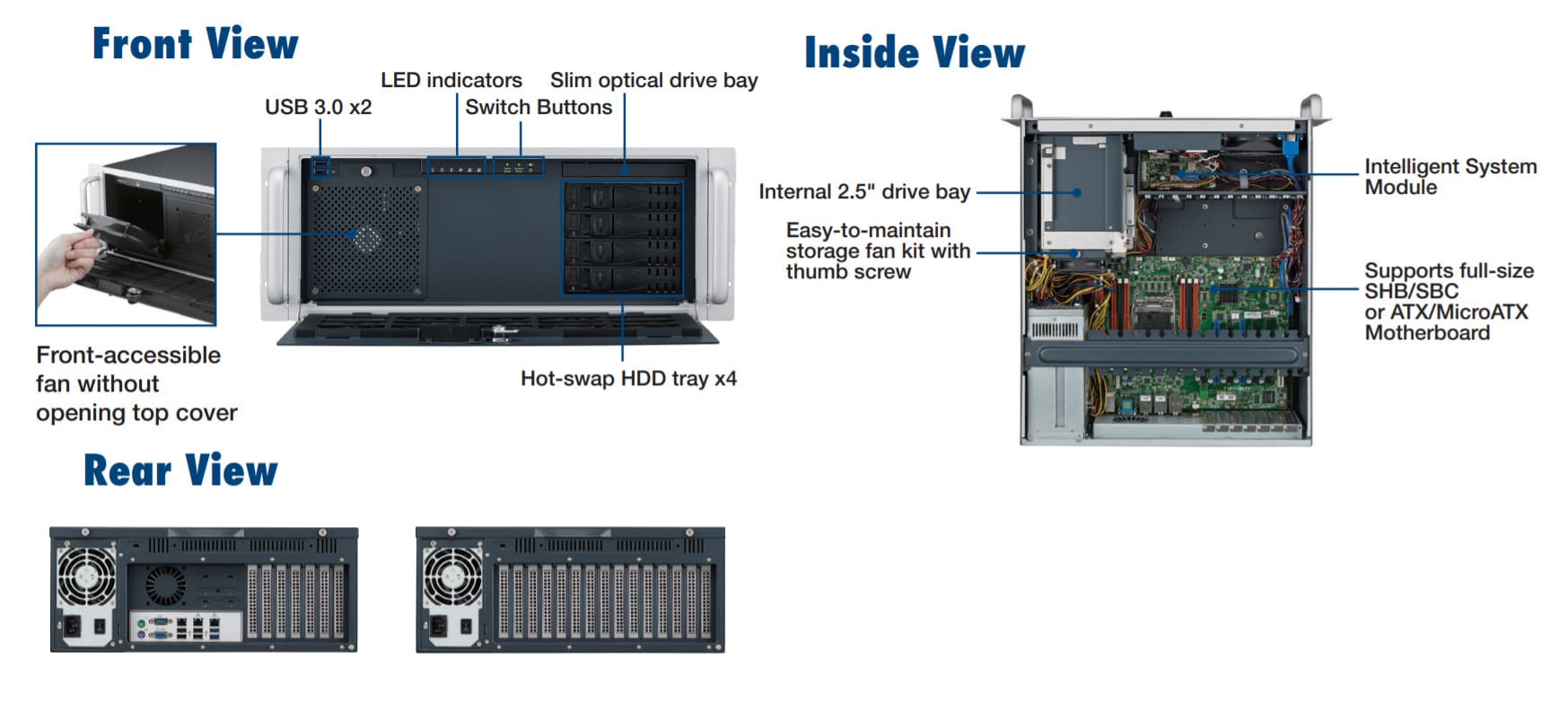 Компьютерный корпус ACP-4340MB-50RB, 4U, монтаж в 19" стойку, ATX/MicroATX, 1 х Slim ODD, 1 х внутренний 2.5" SAS/SATA, 4 х 3.5"/ 2.5"SAS/SATA с возможностью "горячей замены", 2 х USB3.0, адаптер питания RPS8-500ATX-GB 500(1+1) Вт, 0....+ 40 °C