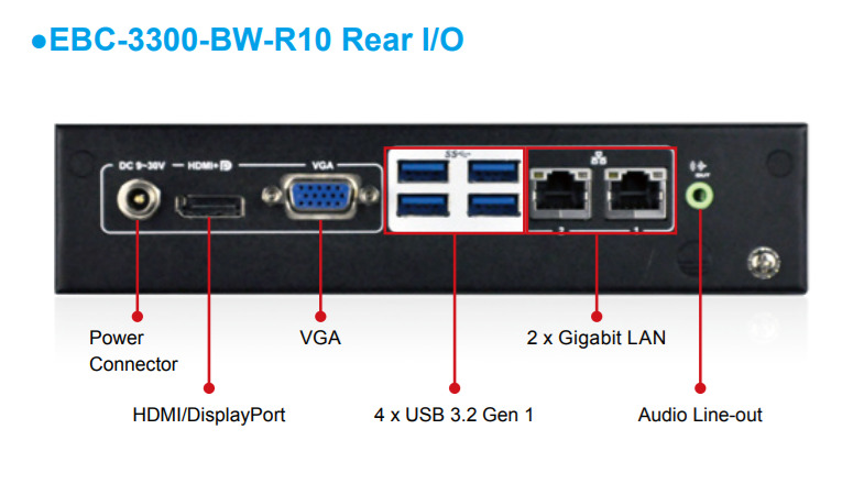 Корпус Корпус EBC-3300-BW для промышленной платы tKINO-BW, Mini-ITX SBC, 1 x DDR3L 1333/1066 МГц SO-DIMM, до 8 Гб, 1 x 2.5'' SATA 6Гб/с HDD/SSD, 1 х SD, 1 х mSATA, 2 х LAN, 1 x VGA