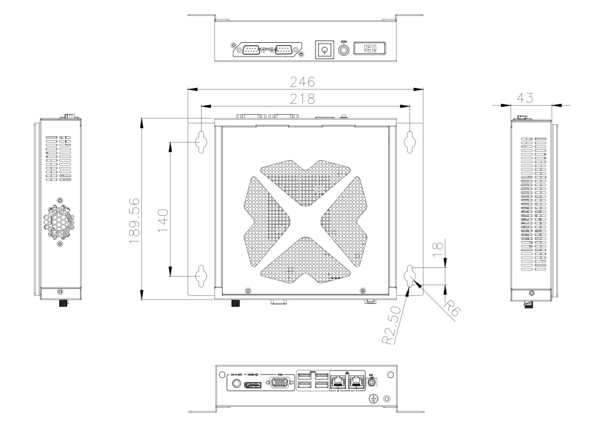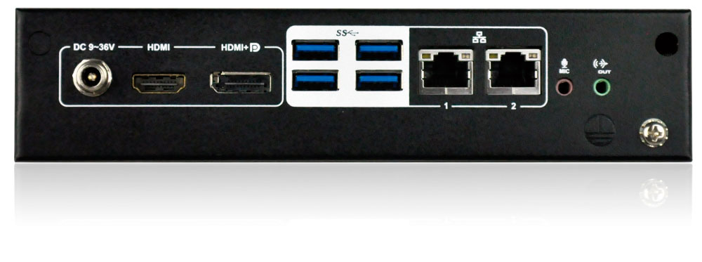 1 x DP/HDMI, 4 х USB 3.2, 1 x Audio, 1 x Full-size PCIe Mini, 9~30 B DC. 1 х LED кабель, 1 х кабель питания, без БП.