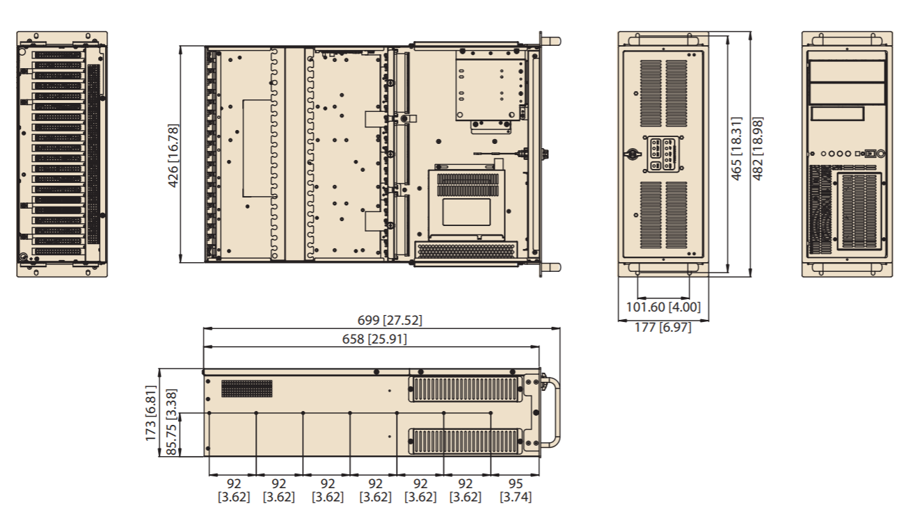 Промышленный компьютерный корпус IPC-623BP-1KZC, монтаж в стойку 19", 4U, 1 х 3.5", 2 х 5.25", 20-слотовый, 96PS-A1K2WPS2, 1200 Вт