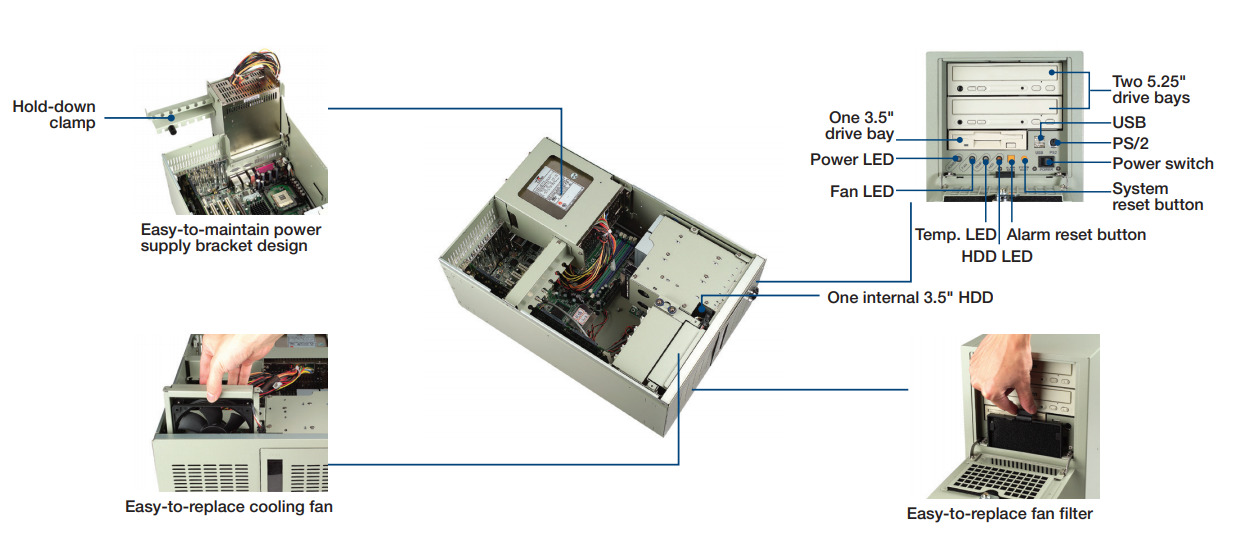 Компьютерный корпус IPC-7220-00XE, ATX, 2 х 5.25", 1 х внешний 3.5", 1 х внутренний 3.5", 2 х USB 2.0, 2 х PS/2, без PSU