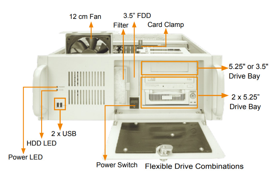 Корпус RACK-360GW/A130С, 4U, 14 слот., PICMG 1.0/PICMG 1.3, 3 x 5.25”, 1 x 3.5” (2 x 5.25”+2 x 3.5” HDD или 2 x 5.25”+1 x 3.5” HDD+1 x 3.5” или 2 x 5.25”+2 x 3.5”), 2 x USB, 2 x COM, 2 x LPT, блок питания ACE-A130С (300 Вт, ATX), белый, монтаж в 19” стойку