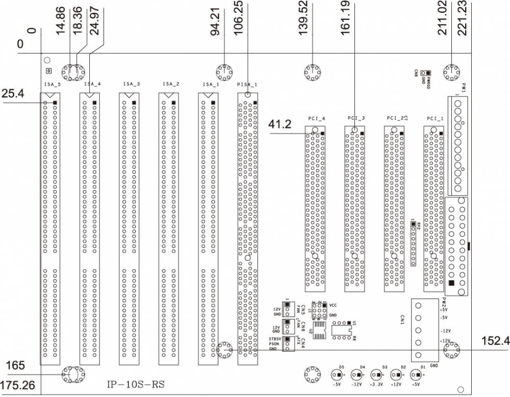 Объединительная плата IP-10S, 10 слотов с 1xPCISA/5xISA/4xPCI, RoHS