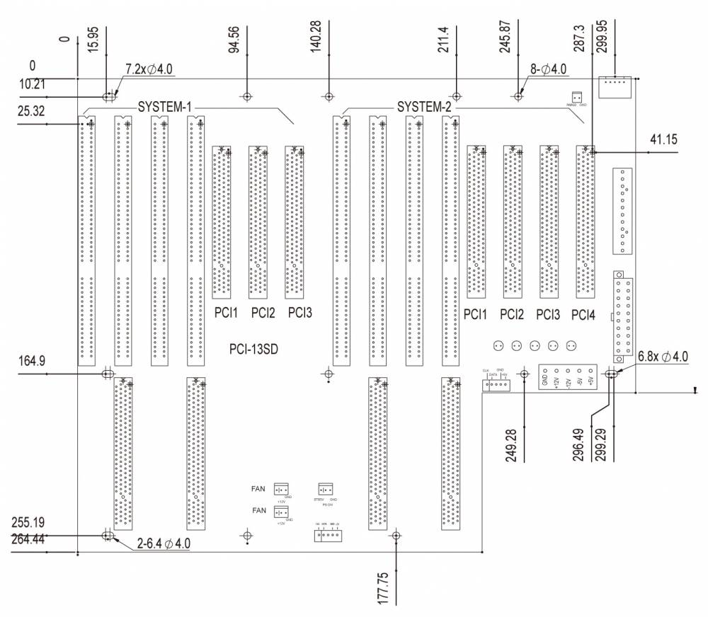Двухсистемная кросс-плата PCI-13SD, PICMG 1.0, слоты расширения: 2xPICMG, первая система: 3xPCI, 3xISA, вторая система: 4xPCI, 3xISA