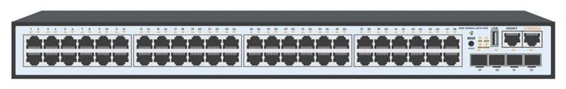 коммутатор SNR Управляемый PoE коммутатор уровня 2, 48 портов 10/100/1000Base-T с поддержкой PoE, 4 порта 1/10G SFP+, PoE 740 Ватт