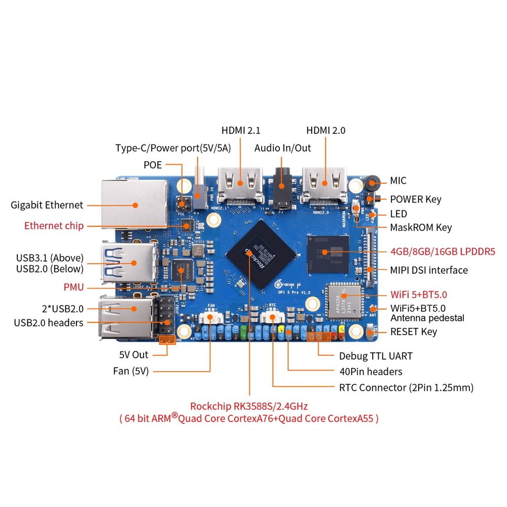 Одноплатный компьютер Orange Pi 5 Plus 16GB Rockchip RK3588, 16Gb, HDMI 2.1, Gigabit LAN p... Артикул: Orange Pi 5 Plus 16GB