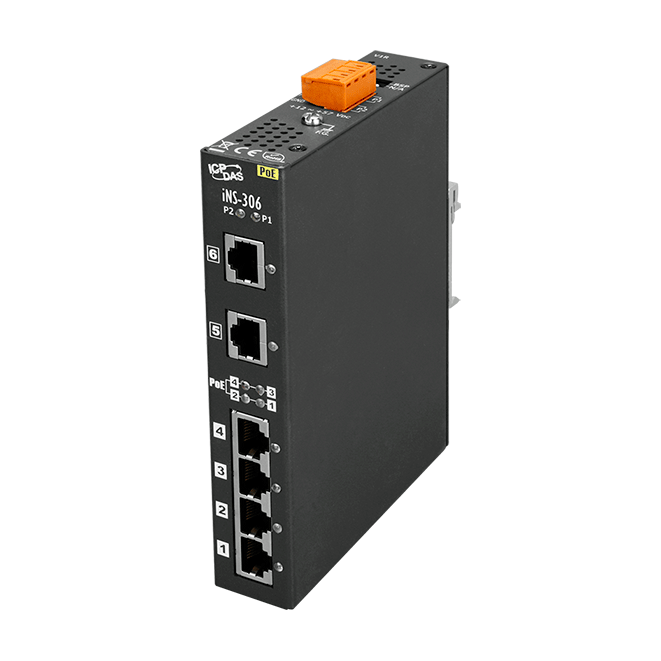 Коммутатор IoT 6 x 10/100 BaseTX (4 x PoE), питание 12 ~ 57 В пост., металлический корпус