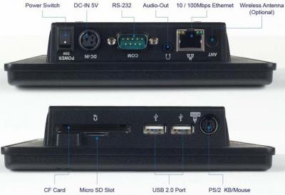 Безвентиляторный панельный компьютер PMX-090T-5A-512, с TFT-матрицей 9 с тачскрином, встроенной памятью DDR2 512МБ, портами LAN, RS-232/422/485, 2 х USB, Аудио, слотами для CF и MicroCD и блоком питания на ~220V