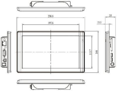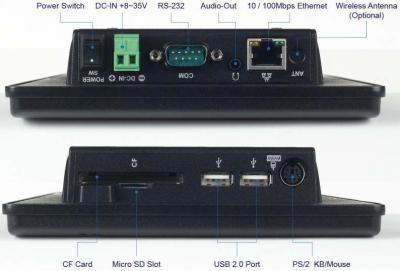 Безвентиляторный панельный компьютер PMX-090T-8A-512, с TFT-матрицей 8.9 с тачскрином, встроенной памятью DDR2 512МБ, портами LAN, RS-232/422/485, 2 х USB, Аудио, слотами для CF и MicroCD, с питанием 8~35V DC