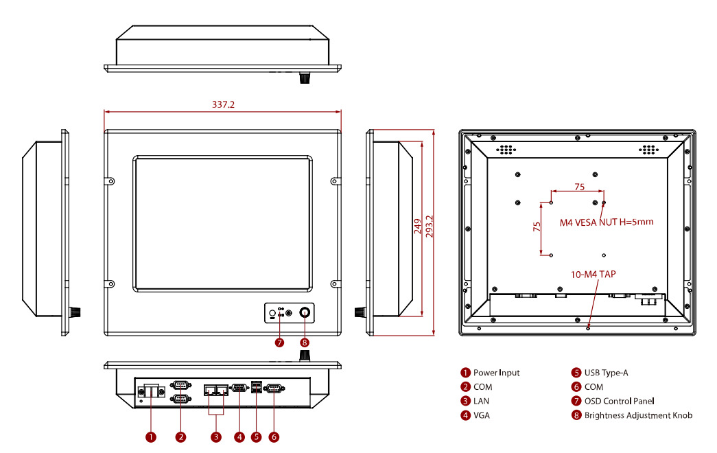 Морской панельный безвентиляторный компьютер R12ID3S-MRM2/PAT-4GB-256GB SSD, дисплей 12.1", 1024 x 768, 500 нит, Intel Atom® N2600, 1.6 ГГц, чипсет Intel® NM10, 4Гб DDR3L 1600 MГц, 256 Гб mSATA SSD, 1 x VGA, 2 х GbE LAN, 2 x USB2.0, 2 x RS232 или 2 x изолированных RS422/485, 1 x RS232/422/485, резистивный сенсорный экран, IP66, 24В DC, DNV