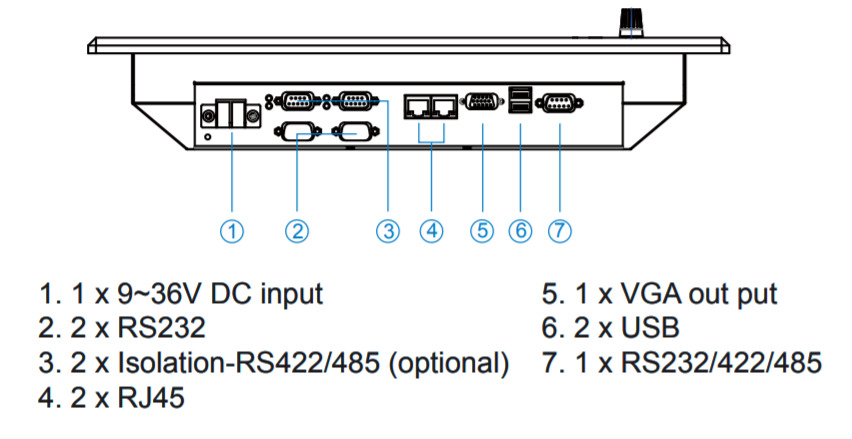 Морской панельный безвентиляторный компьютер R15ID3S-MRM2, дисплей 15" TFT LCD, 1024 x768, 400 нит, процессор Intel® Atom N2600, 1.6 ГГц, DDR3 800/1066 МГц, max 4 Гб, 32 Гб mSATA SSD, 1 x SATA2, 1 x Mini PCIe (mSATA SSD), 1 x VGA, 2 x 10/100/1000 (RJ45), 2 x USB Type-A, 2 x RS232, 1 x RS232/422/485, 2 x изолированных RS422/485 (опция), IP65, 9~36 В DС