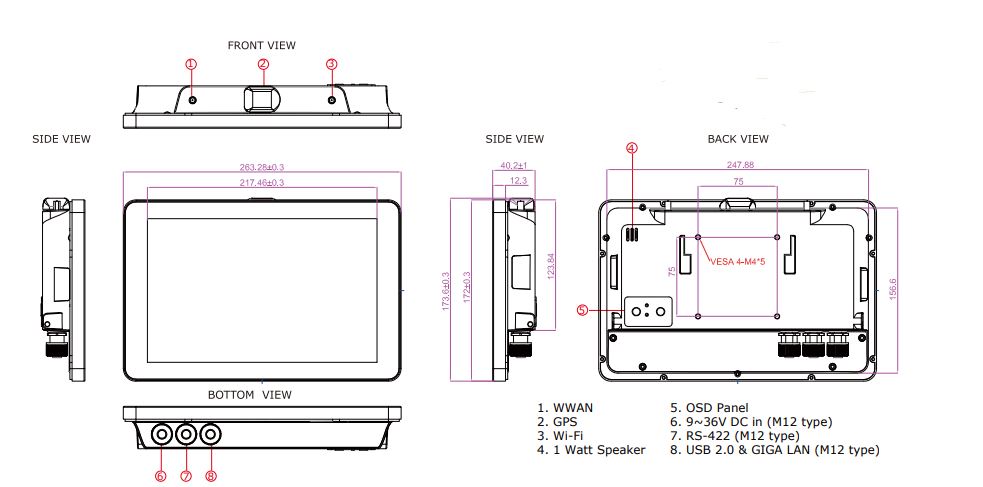 Панельный компьютер W10IB3S-MRH2/OB, дисплей 10.1", 1280 x 800, 300 нит, процессор Intel Celeron Quad Core N2930 1.83ГГц, RAM: 4ГБ, mSATA SSD: 64ГБ MLC, проекционно-ёмкостный экран, оптическая склейка, I/O: 1 x 9~36V DC in (M12 type) 1 x RS-422 (M12 type) 1 x USB 2.0, GIGA LAN (M12 type) Design Comply IEC-60945 only, кабель питания EURO