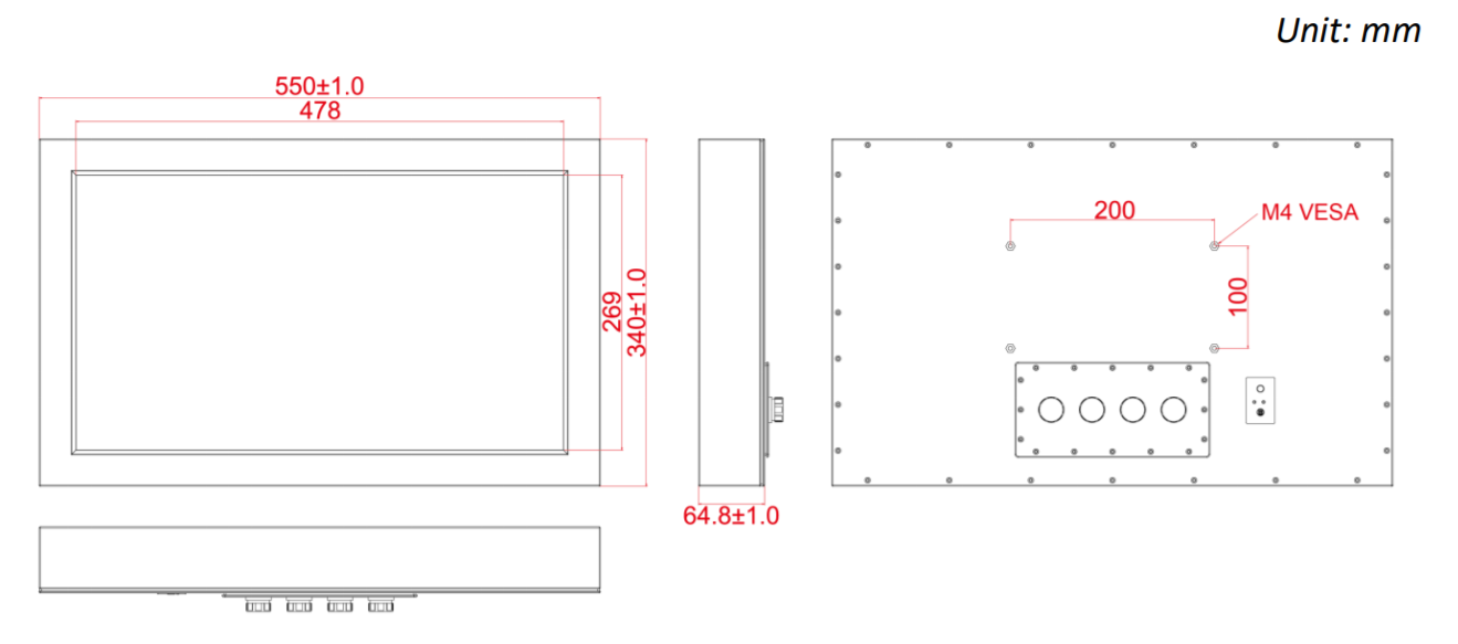 Панельный компьютер W22IH3S-65A3/PAT, дисплей 21.5", защита IP65, 1920 x 1080, 250 нит, процессор Intel 5th G Core i5-5200U 2.2ГГц, RAM: 4ГБ, mSATA SSD: 64ГБ, пятипроводной резистивный экран, M25 Conn, без ОС, кабель питания EURO